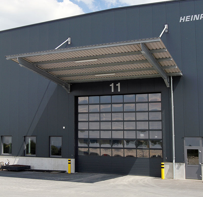 Wintec Stahlpaneeltore öffnen sich nach oben, sodass im Bodenbereich kein Platz verschenkt wird. Der Anschlag erfolgt hinter der Toröffnung.